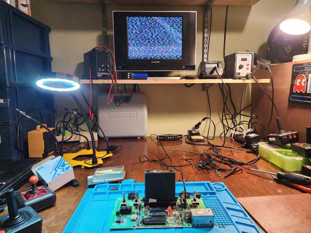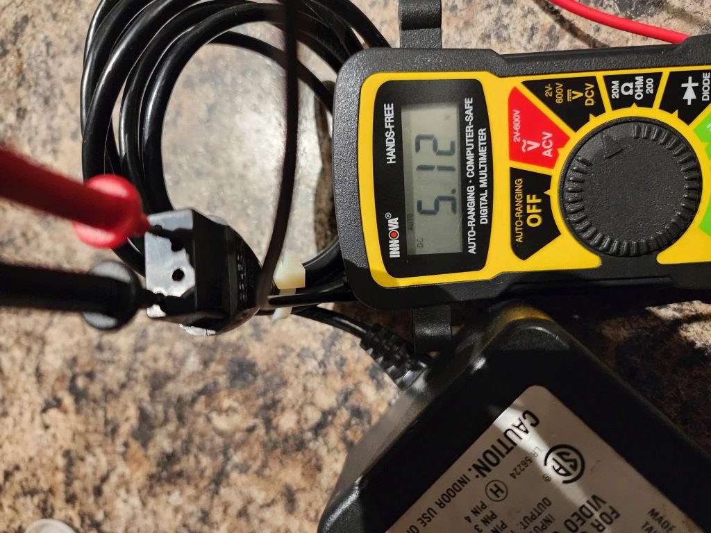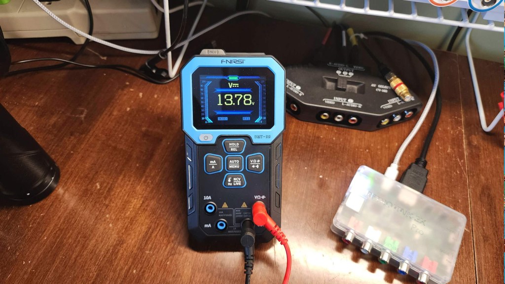 After receiving the console, the first thing that I did was check the voltage of the 9V power adapter. Seeing a healthy unloaded 13.78 V meant that I could safely power on the unit and I was pleased to see Dig Dug come to life on my screen.