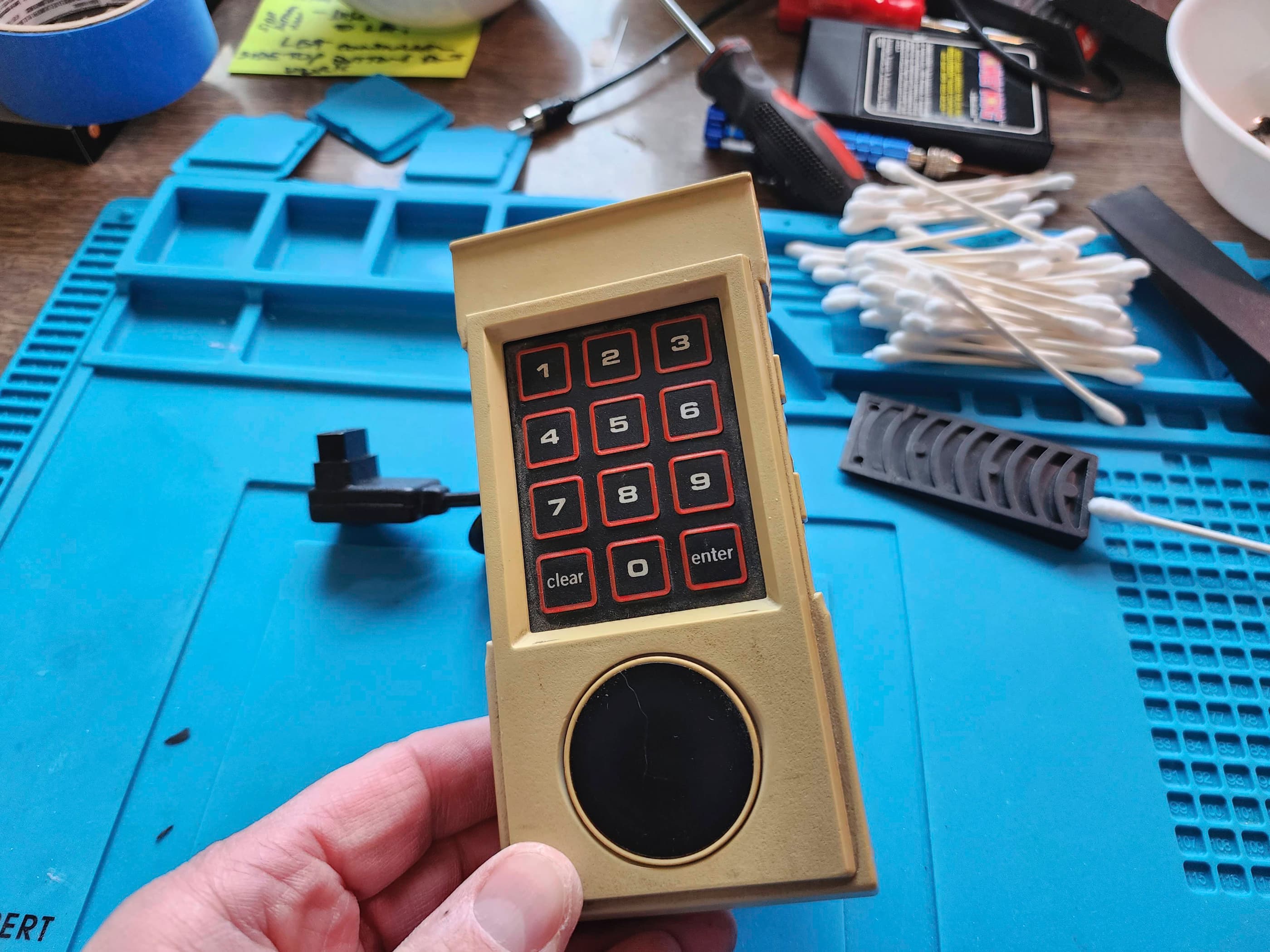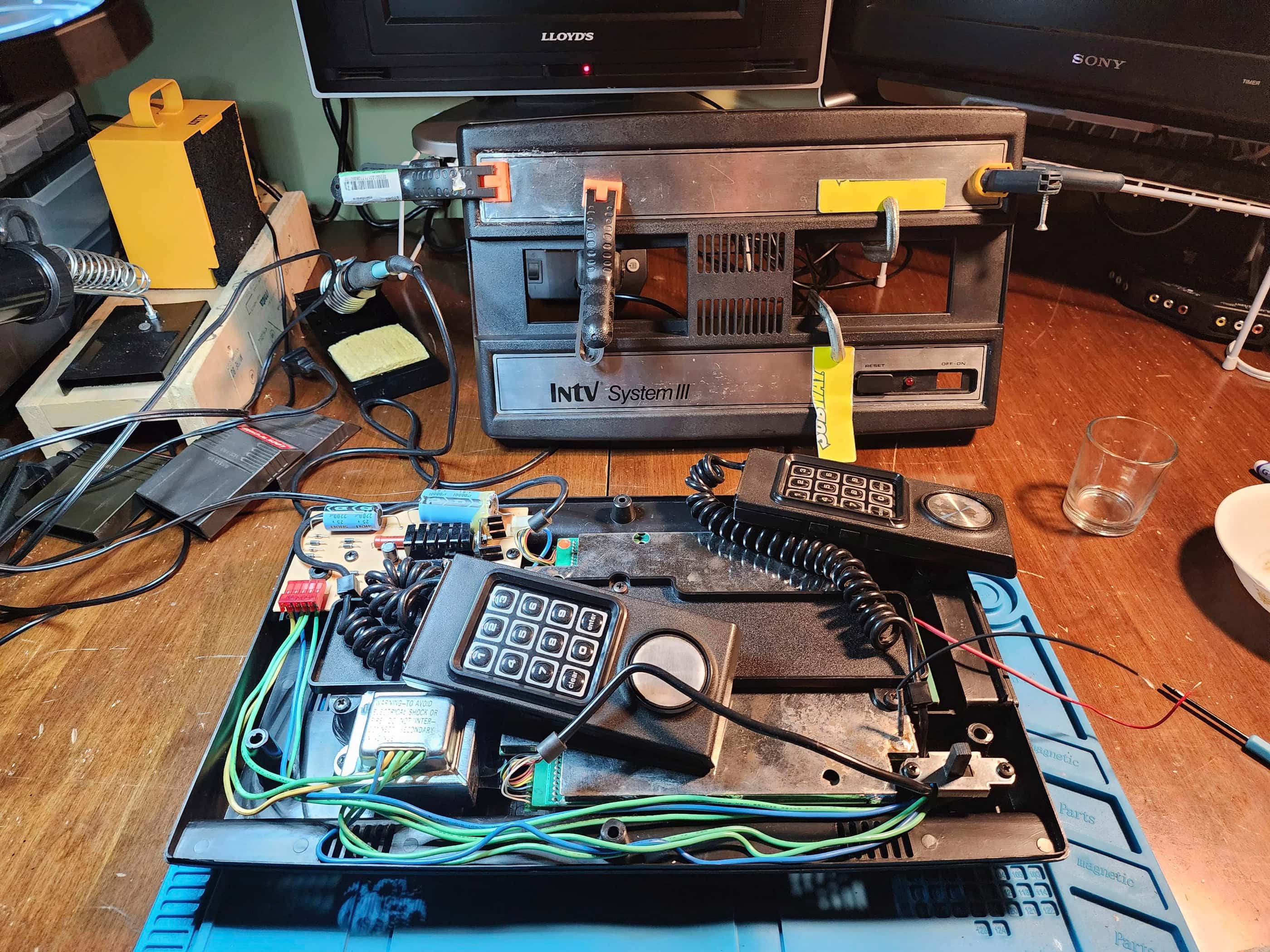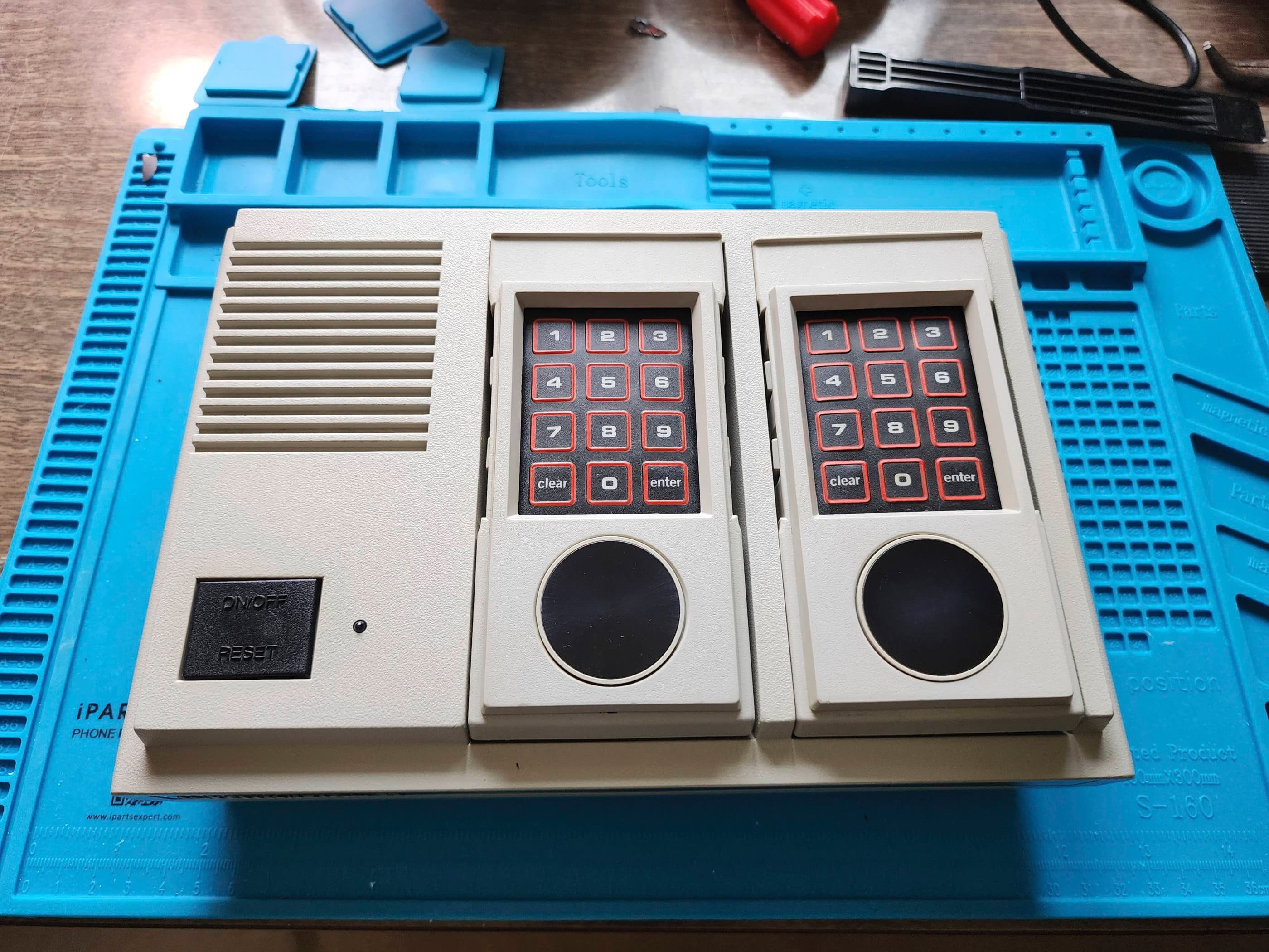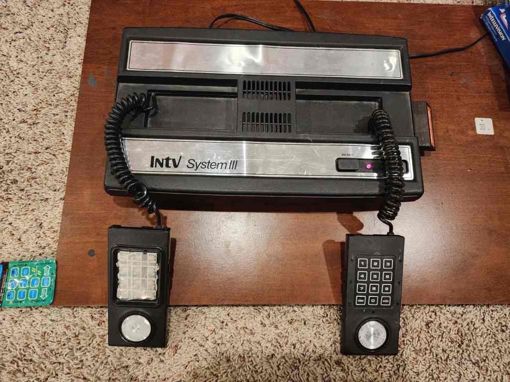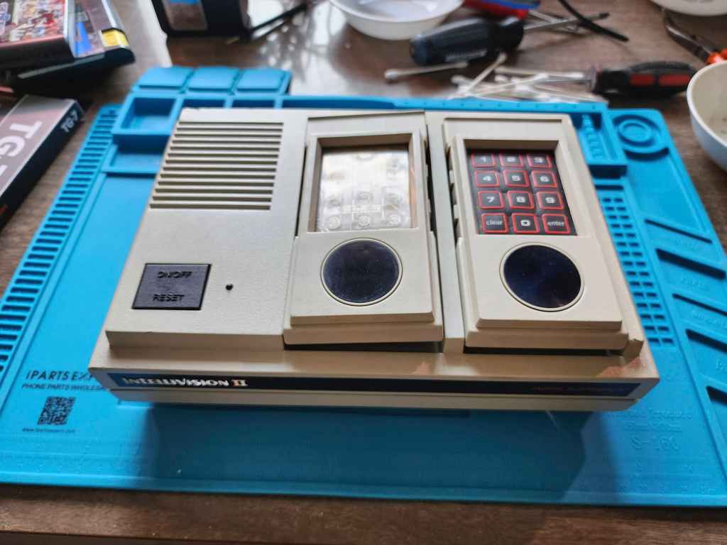 When Inty II #2 arrived, one controller was missing the number pad and the other had crack in it, so I couldn’t use these. When Inty II #3 arrived, it looked worse for wear, but the keypads were in mint condition even though the controller casings were yellowed and damaged. I then disassembled the controllers from all three systems and laid them out for further testing and inspection. Amazingly, the flex circuits from Inty II #3 worked perfectly, so I just ported these over to the undamaged controller cases from Inty II #1. As the directional discs from Inty #2 were in mint condition, I swapped these in as well. I now had two controllers made from three systems that looked and functioned like they were new. I also included the working proprietary power adapter from Inty II #3. Thus, Inty II #1 is now a complete system that looks and functions fantastically. 😁