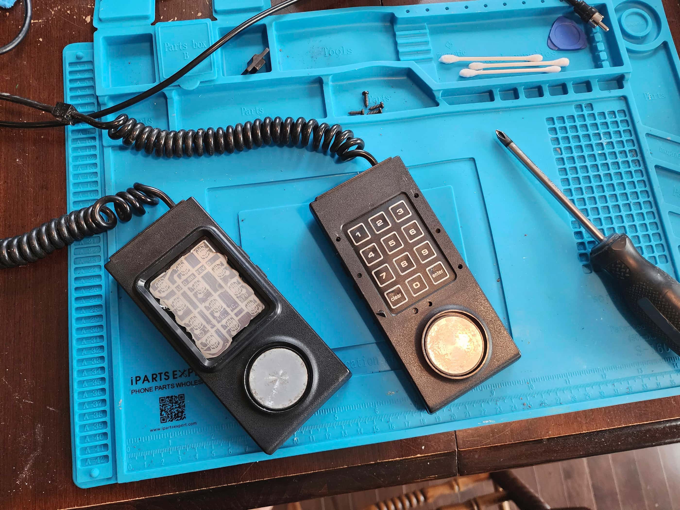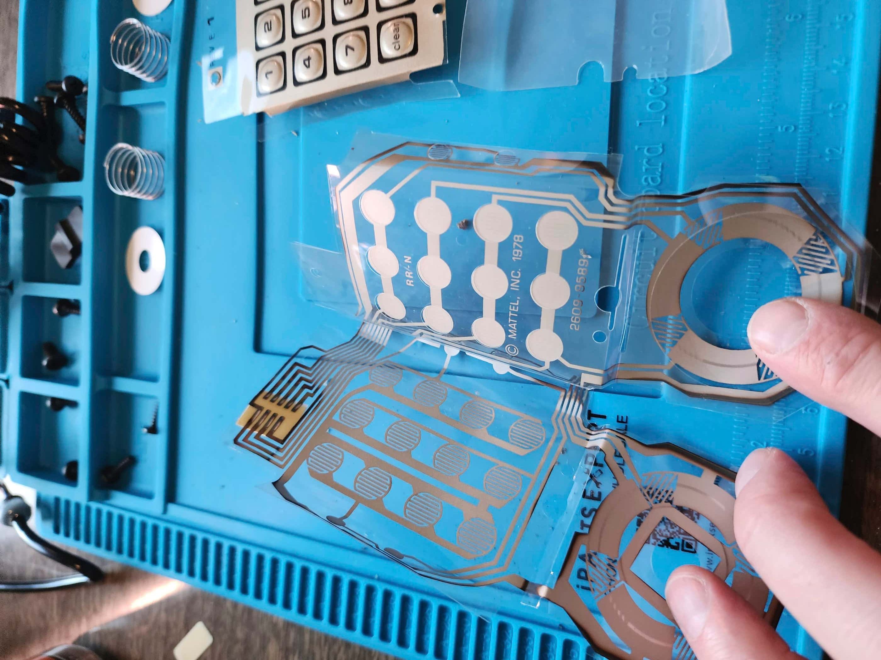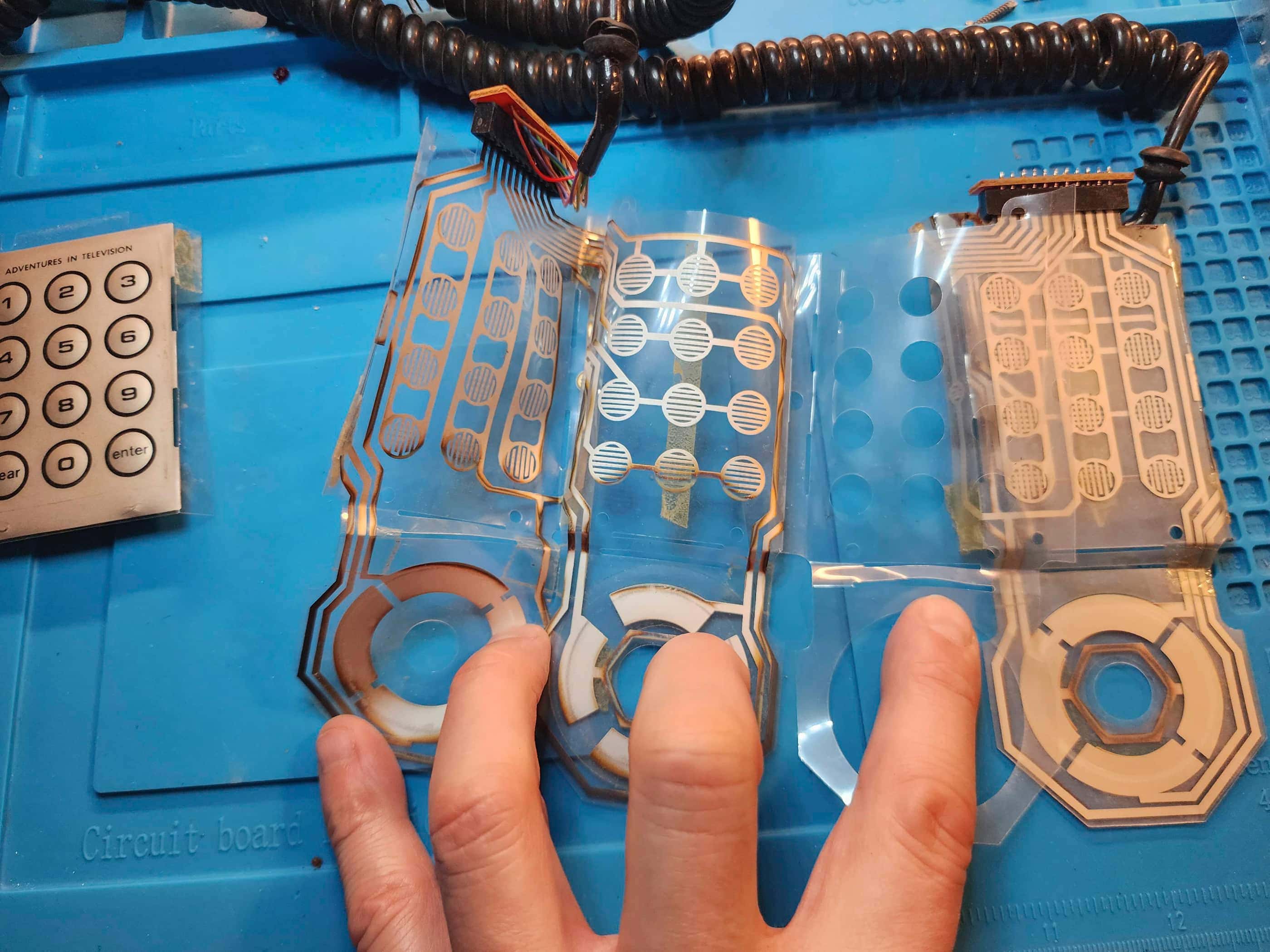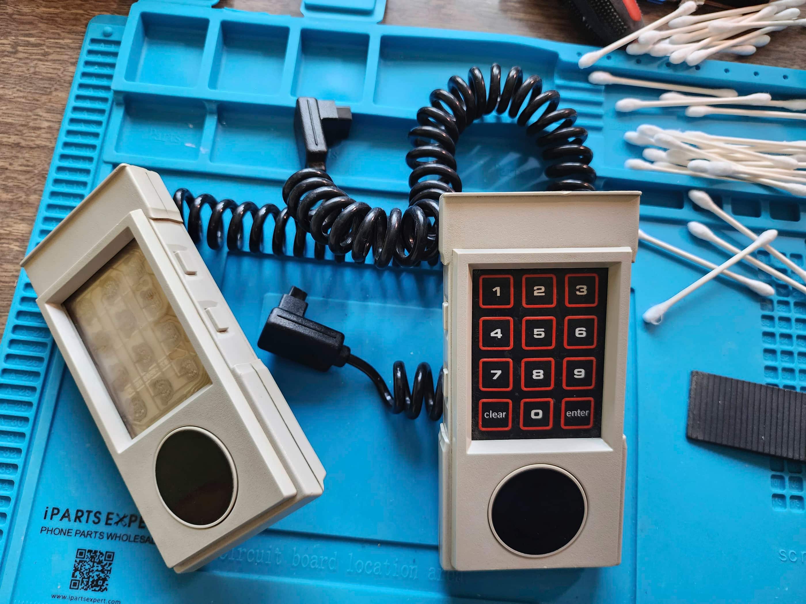 When Inty II #2 arrived, one controller was missing the number pad and the other had crack in it, so I couldn’t use these. When Inty II #3 arrived, it looked worse for wear, but the keypads were in mint condition even though the controller casings were yellowed and damaged. I then disassembled the controllers from all three systems and laid them out for further testing and inspection. Amazingly, the flex circuits from Inty II #3 worked perfectly, so I just ported these over to the undamaged controller cases from Inty II #1. As the directional discs from Inty #2 were in mint condition, I swapped these in as well. I now had two controllers made from three systems that looked and functioned like they were new. I also included the working proprietary power adapter from Inty II #3. Thus, Inty II #1 is now a complete system that looks and functions fantastically. 😁