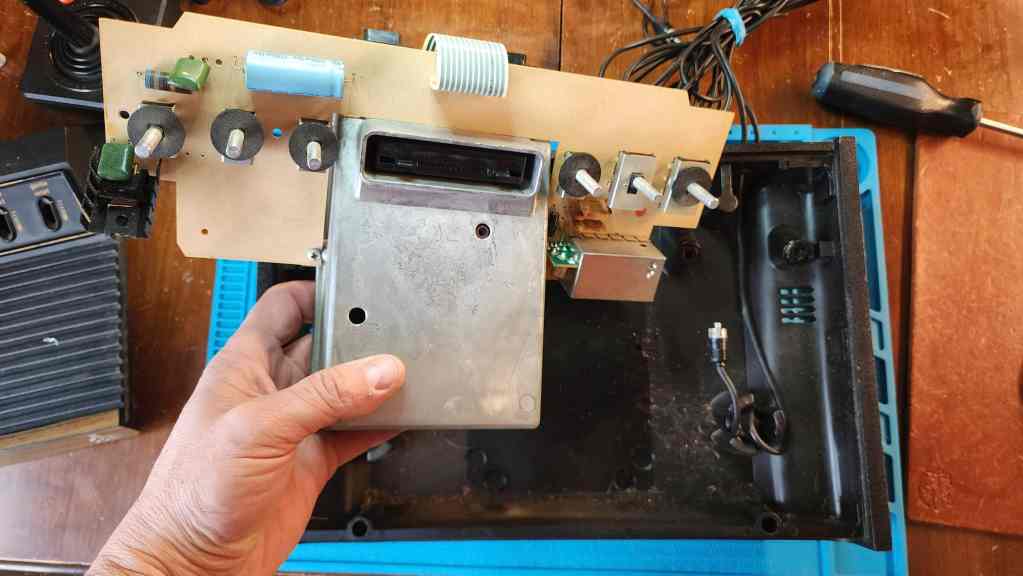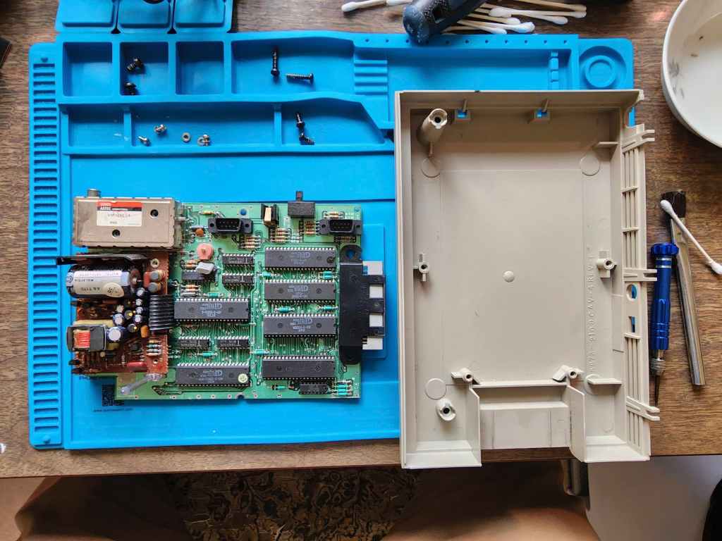 I then cleaned the cartridge slot and the cartridge and then fiddled a bit more with the RF cable. I tried it again and I the game appeared on the screen. Nice! 😁 I now had even more hope, and I set to work opening the console so I could replace the RF cable along with anything else that might need it.