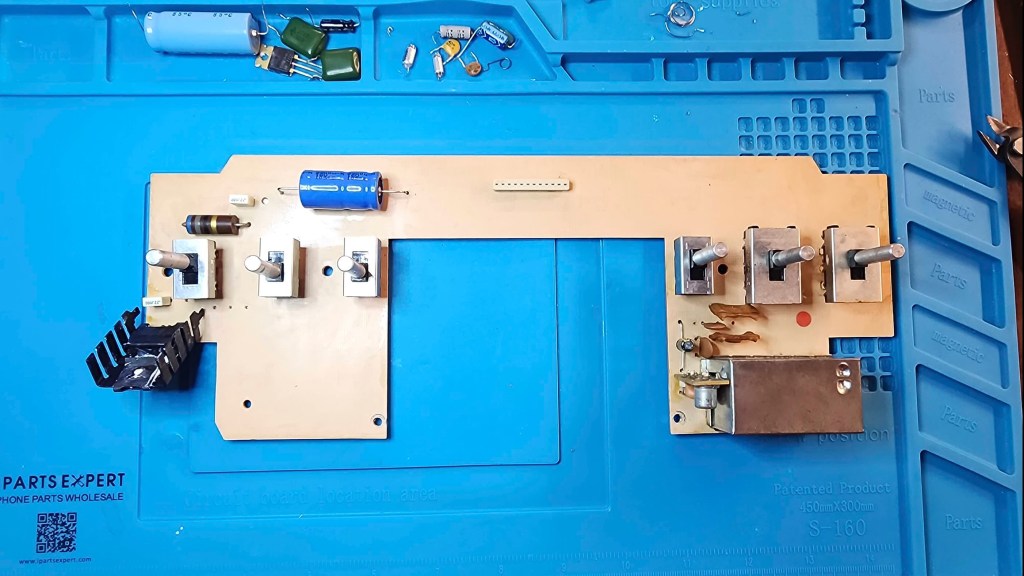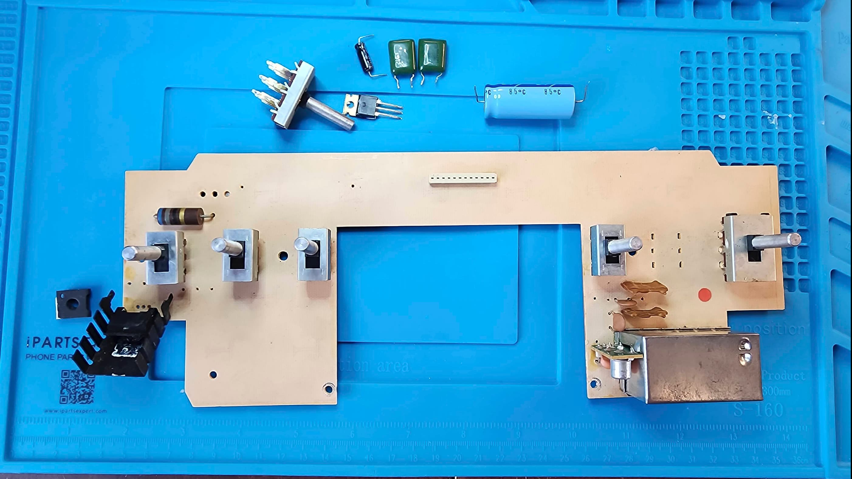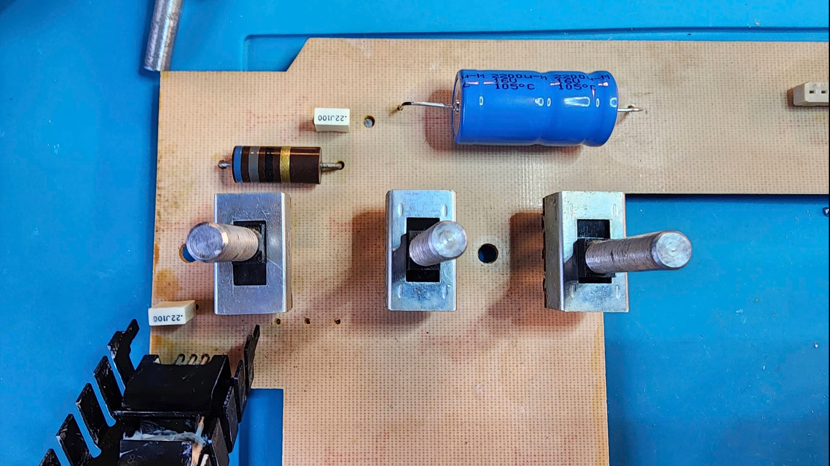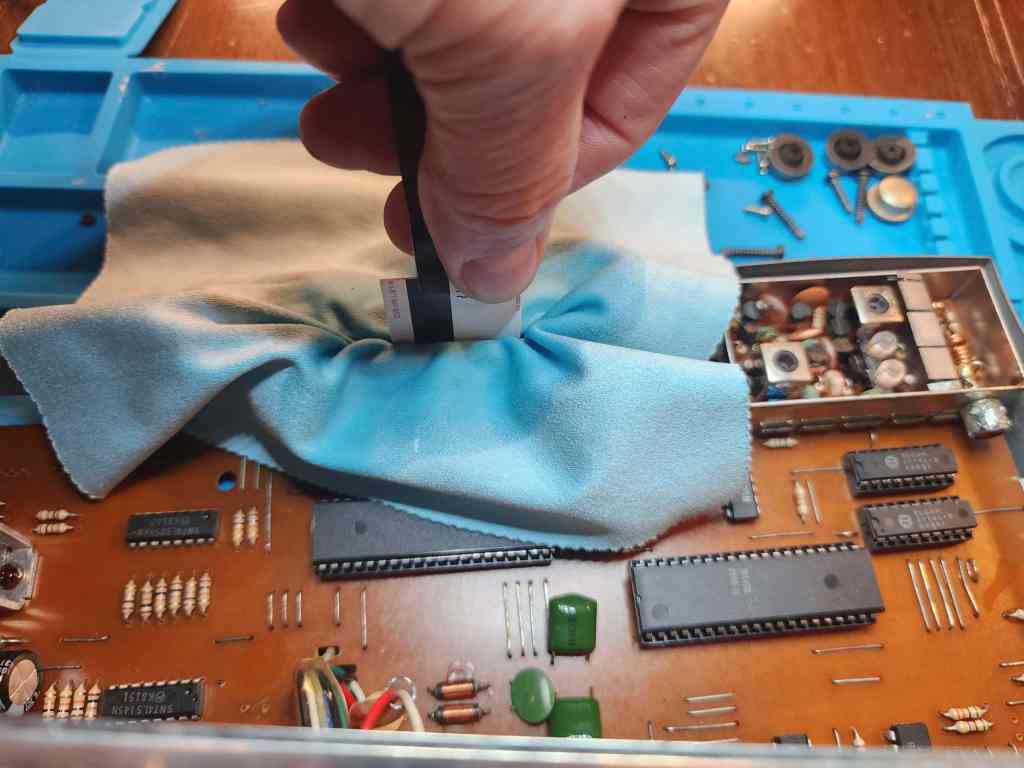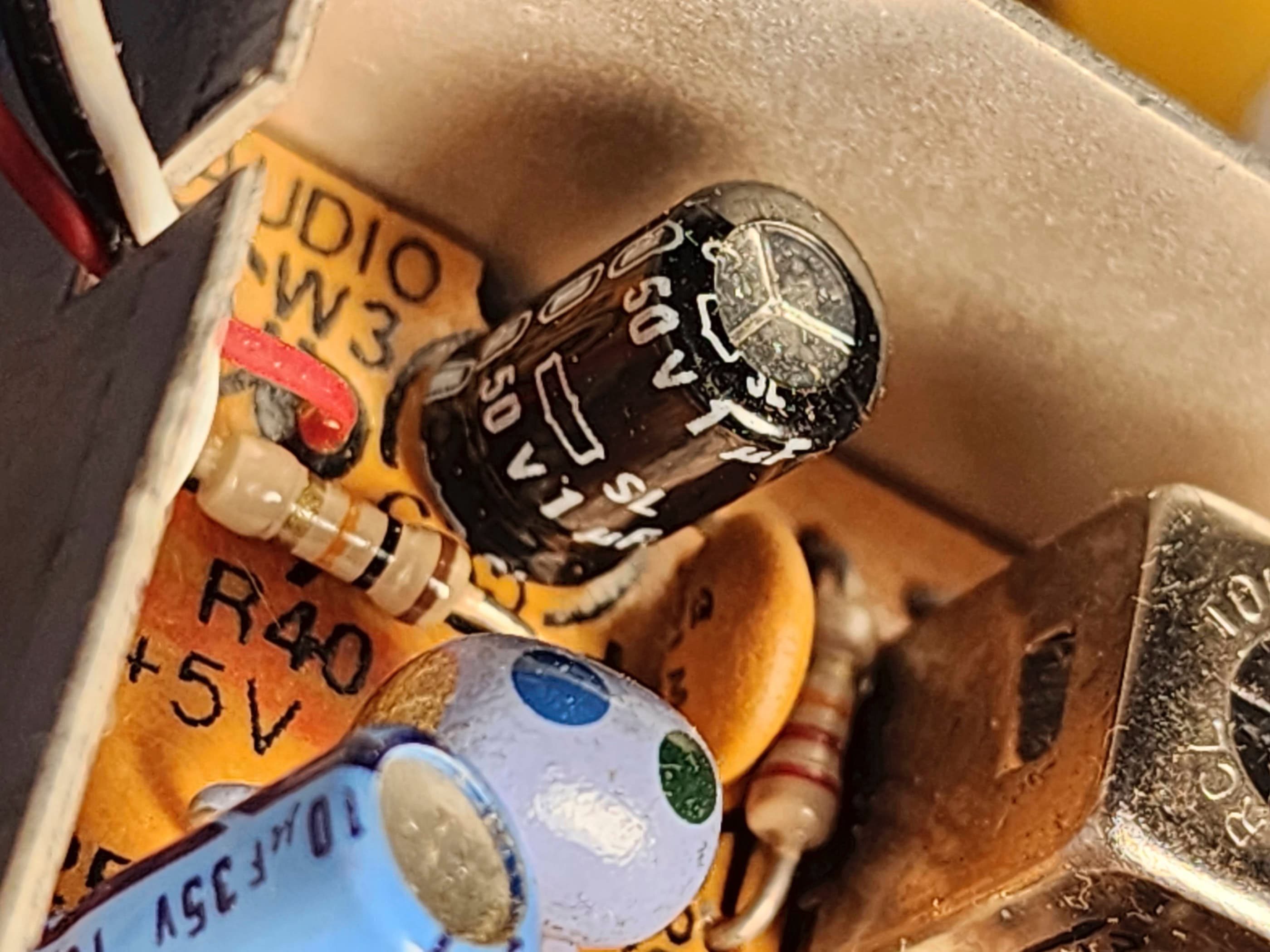 Parts & Products Used: 99% isopropyl alcohol; Chemical Guys Natural Shine; Deoxit D5; thermal paste; electrolytic capacitors (axial): 16v 2200μF (1); electrolytic capacitors (radial): 35v 4.7μF (2); ceramic capacitors: 220pF (2); polyester film capacitors: .22 μF 100v (2); polystyrene capacitors: 820pF 50v (2); 7805 5v regulator; Zener diodes (2)