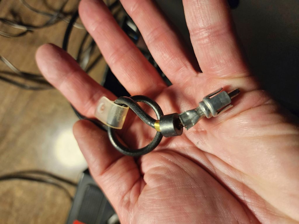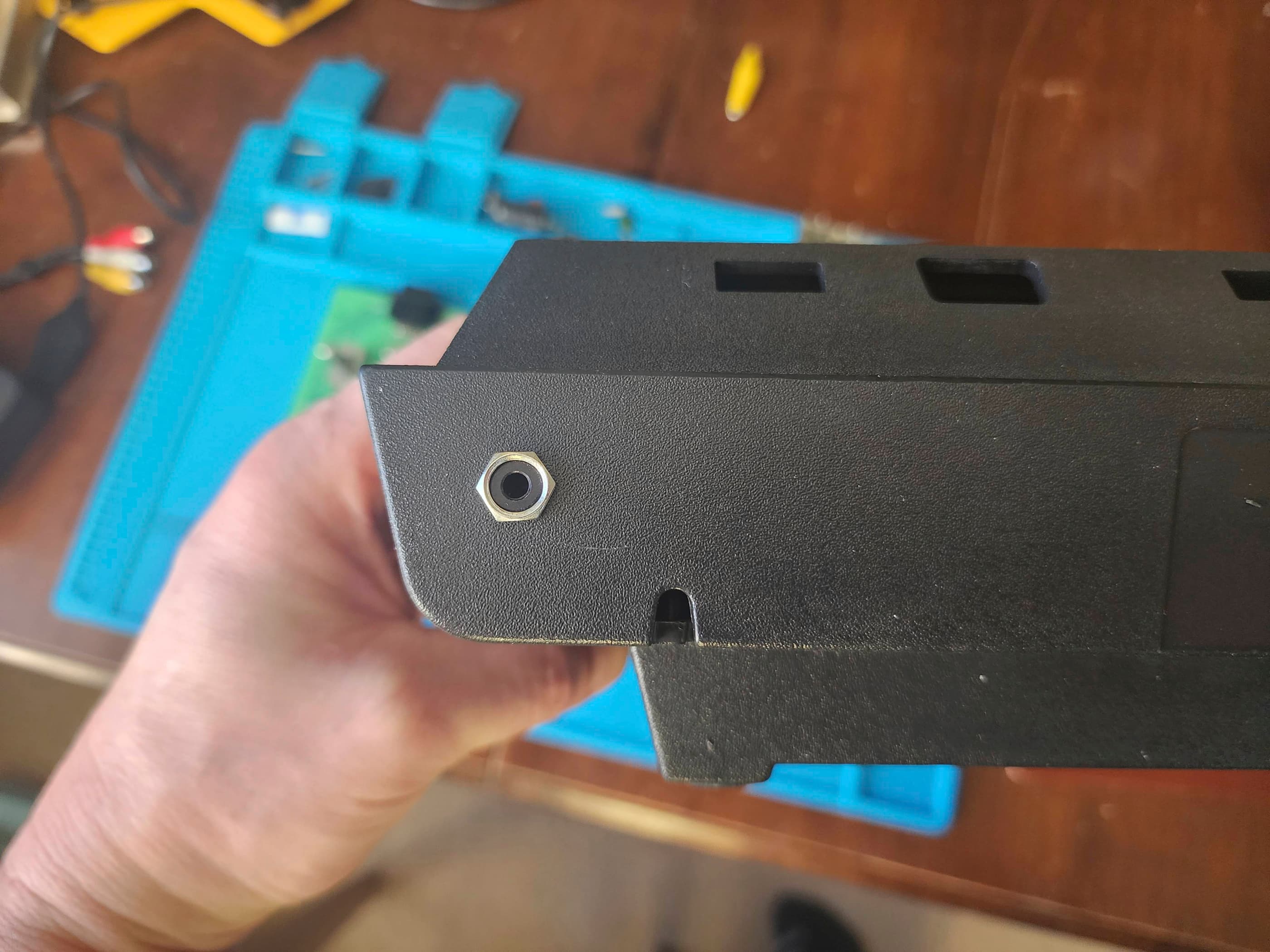 I didn’t have any RCA jacks on hand, but I did have a number of 3.5mm TRRS jacks, so this is what I used. To be honest, I like that a single, small TRRS jack doesn’t take too much away from the aesthetics of a console and with this unit, it blended in nicely. I then wired the jack to fit one of a number of short 3.5mm to female RCA jack cables that I had on hand. As the 2600 only kicks out mono for audio, I joined the left and right pins together.