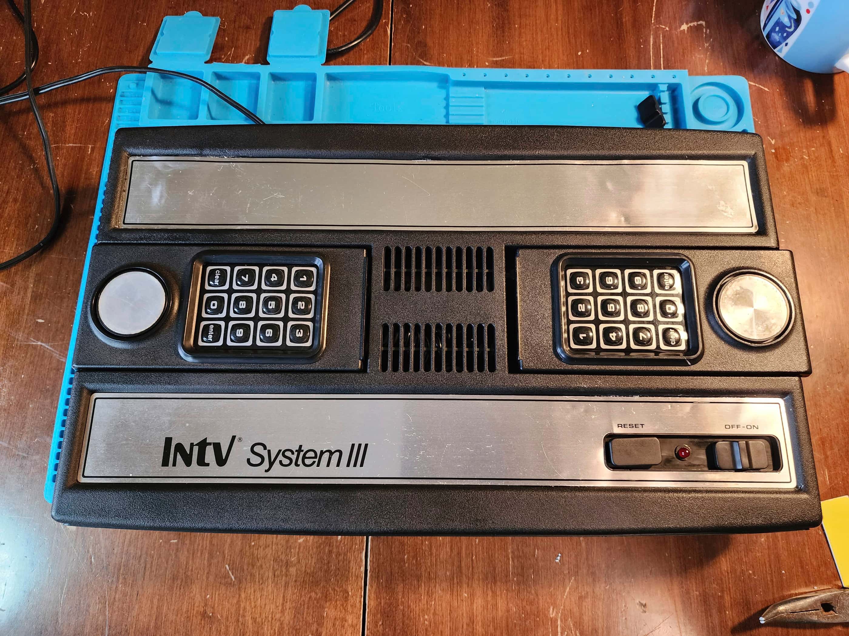 Interesting fact: After the video game crash in 1983, Mattel lost hundreds of millions of dollars and had to liquidate Intellivision. (source) The rights were sold in 1984 to Terrance Valeski, a former VP of Mattel who formed a new company called INTV Corp. After selling through the remaining supplies of Intellivision II, INTV then re-packaged and re-released the original Intellivision as the INTV System III. (source; source)