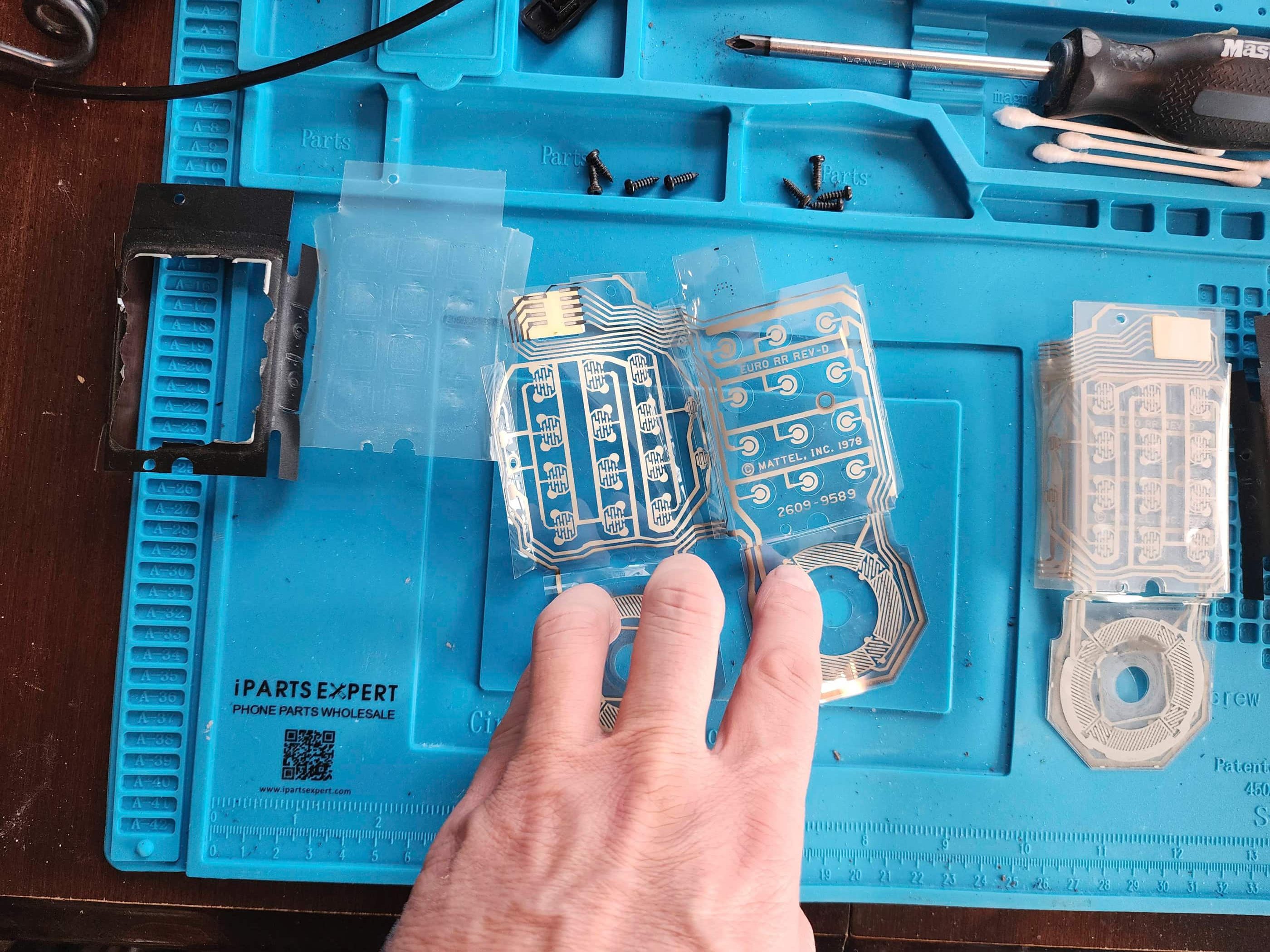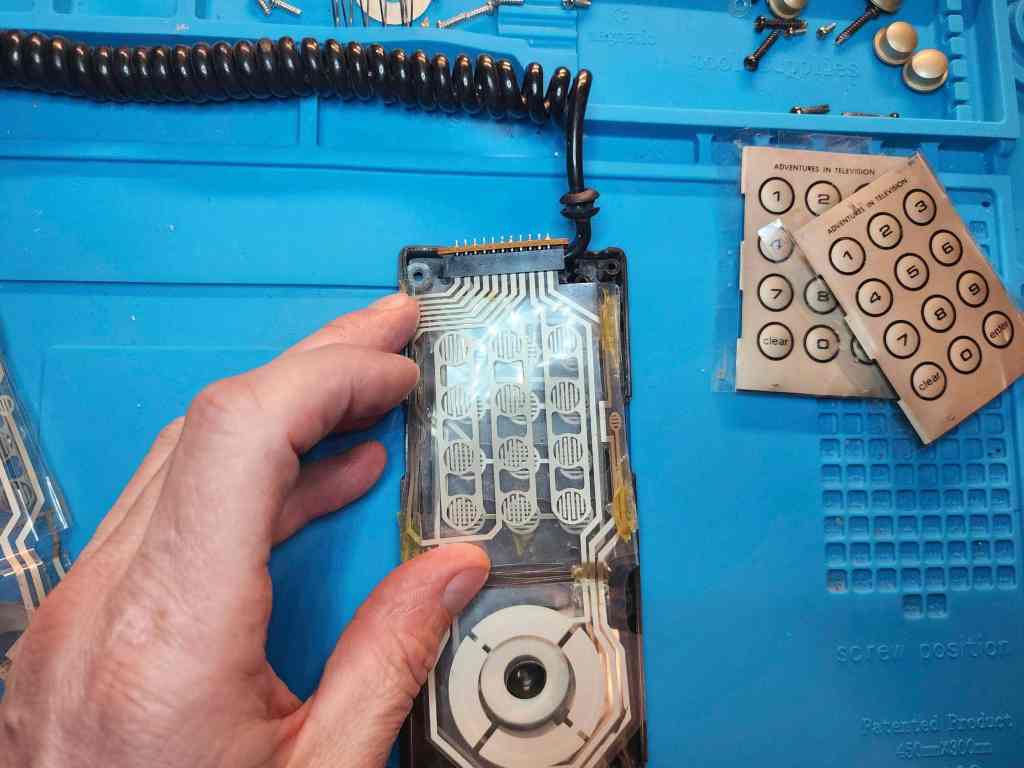 I then got to work taking the system apart and cleaning it. I have to say, the Inty II controllers are the worst controllers to work on because they are so cheaply made. There aren’t any screws holding the casing together like the original Intellivision controllers and the Inty II buttons are simply plastic appendages attached by a thin arm to the back half of the casing. Pulling these things apart it is a risky endeavour because there are double plastic hooks on each corner of the back casing that hold the front and back pieces of the case together. They easily break and if they do, then the controller won’t go back together snugly. Nevertheless, I got both controllers apart without damage, cleaned the flex circuits with IPA (they were dirty!), and then carefully reassembled the controller. The controllers now worked great but I still needed to replace the keypads. I then disassembled the controllers and left them that way until the other Inty II’s arrived.