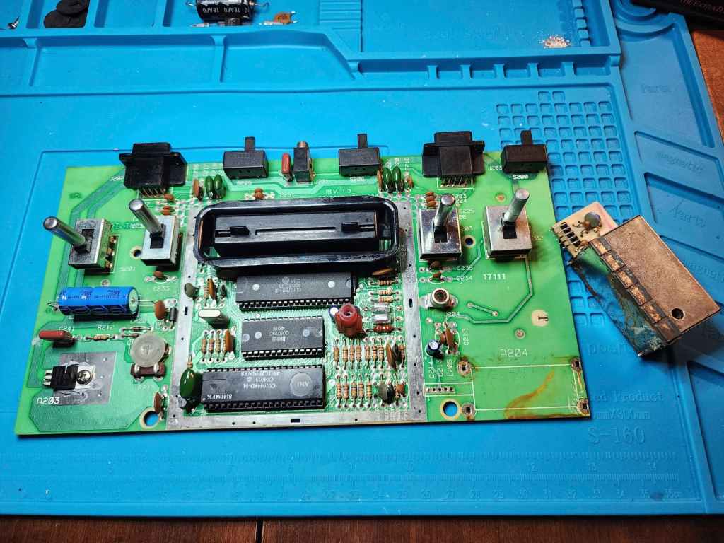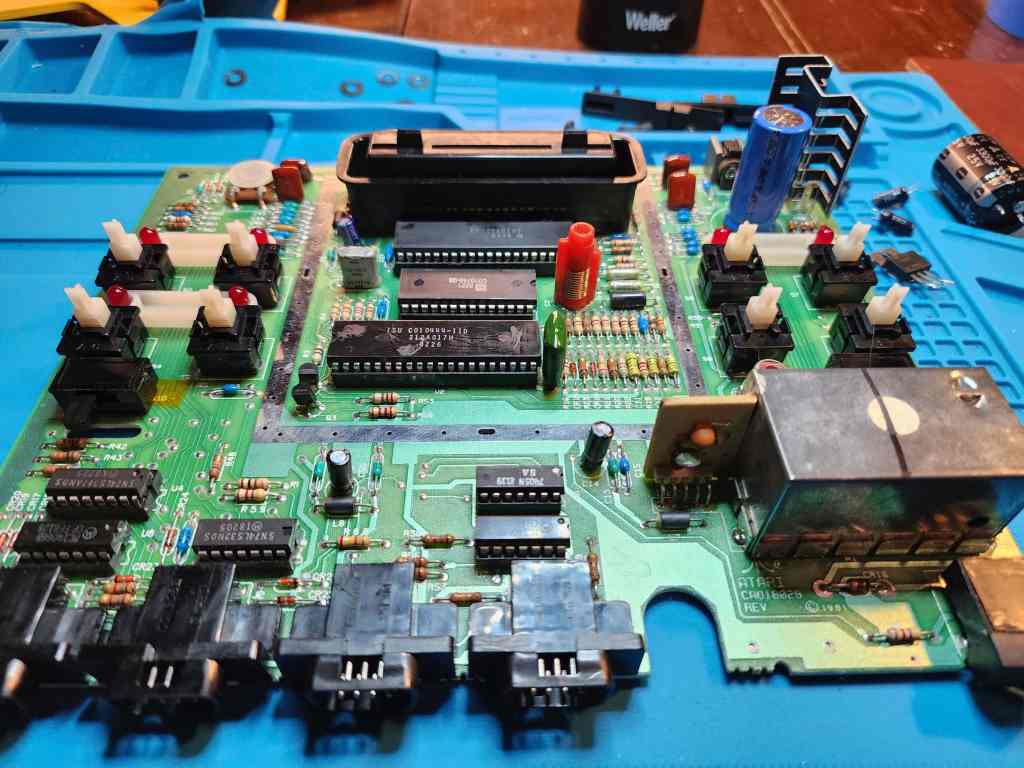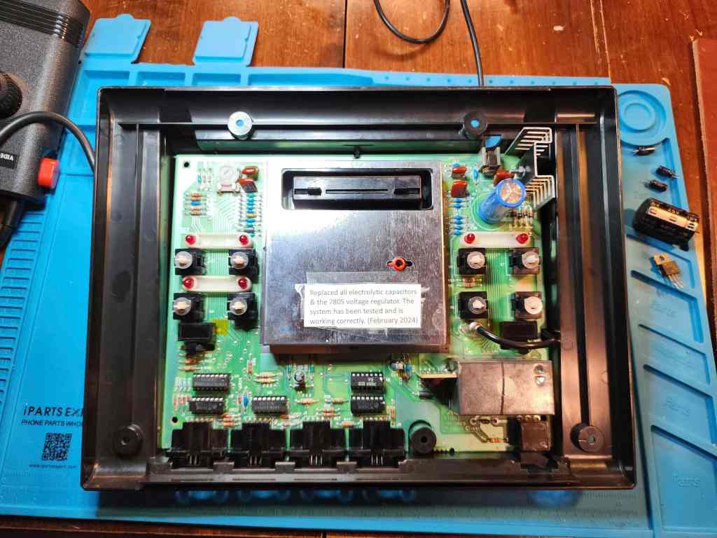 Even though the system didn’t need it, I did take the precautionary measure of replacing all four electrolytic capacitors along with the 7805 voltage regulator. After a thorough cleaning of the board and the cartridge slot, I ran it through some tests (including all the buttons and joystick ports) and everything worked perfectly. I then washed and polished the case and put everything back together.