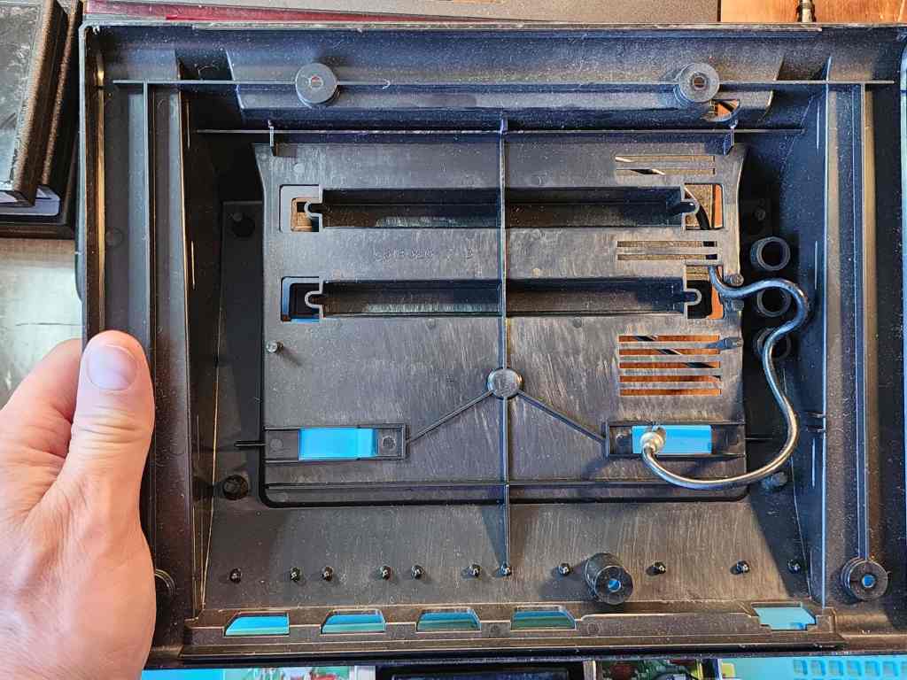 One issue I did notice right off the bat, was the broken spring on the Game Select toggle switch. I also noted that the unit needed a colour adjustment, but other than these two issues, it worked perfectly. Of course, as it had obviously been in storage for many years, it was quite dirty and needed a little TLC.