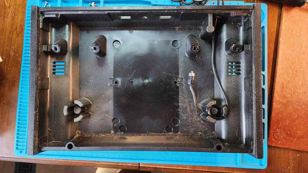 Project Details: I first saw this unit almost a year ago when my local retro game store, Blast From The Past, had someone drop it off. Sporting an obvious cut and attempted repair on its RF cord, both the owner and I were unsure if it worked. Fast forward to this month, and I happened to be in the store, and sure enough, it was still sitting on the floor behind a display case – and it was still untested. The owner gave me a good deal on the console along with a few games, and I was excited to get it home and get to work. 🙂