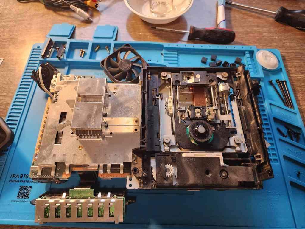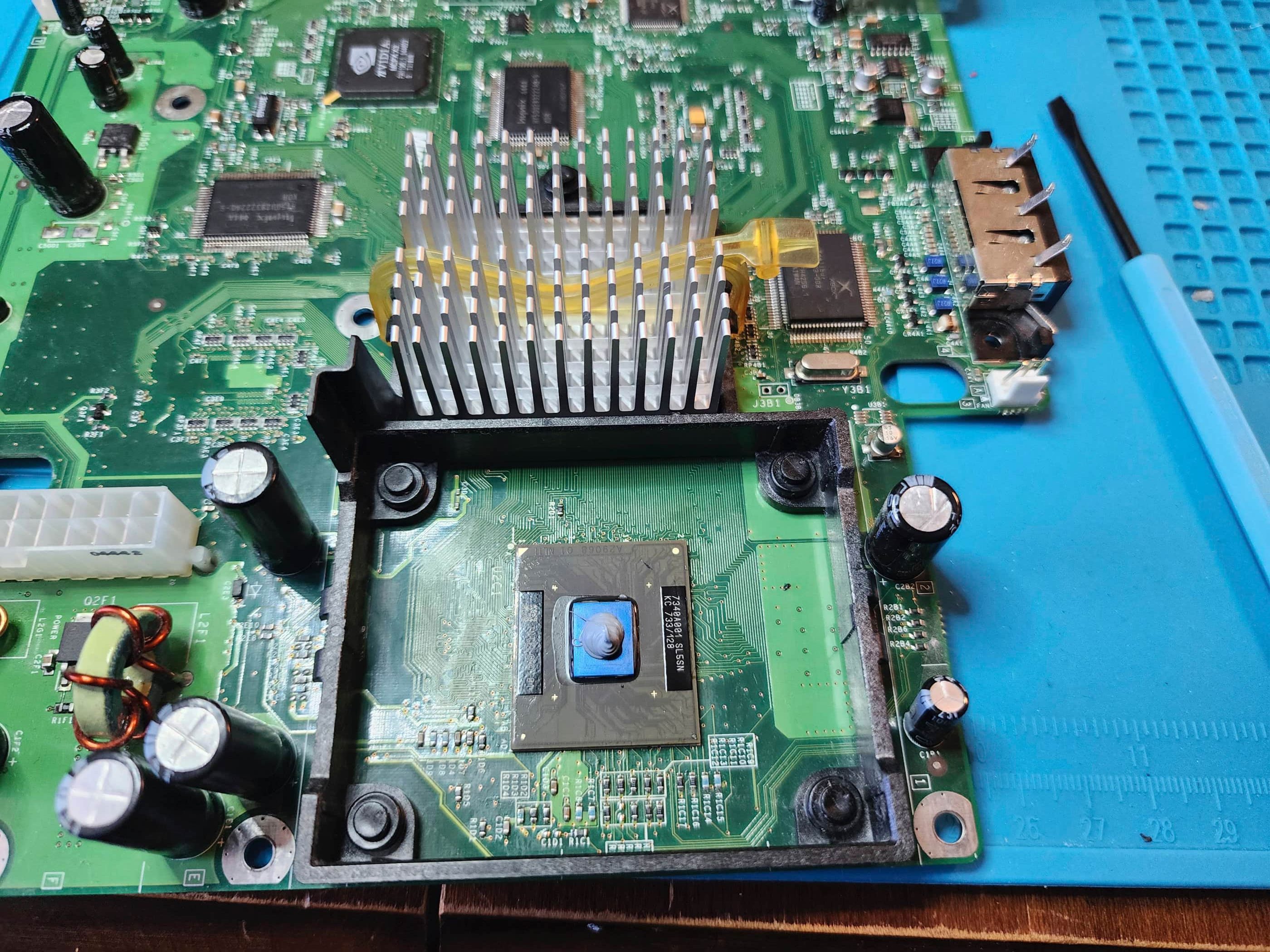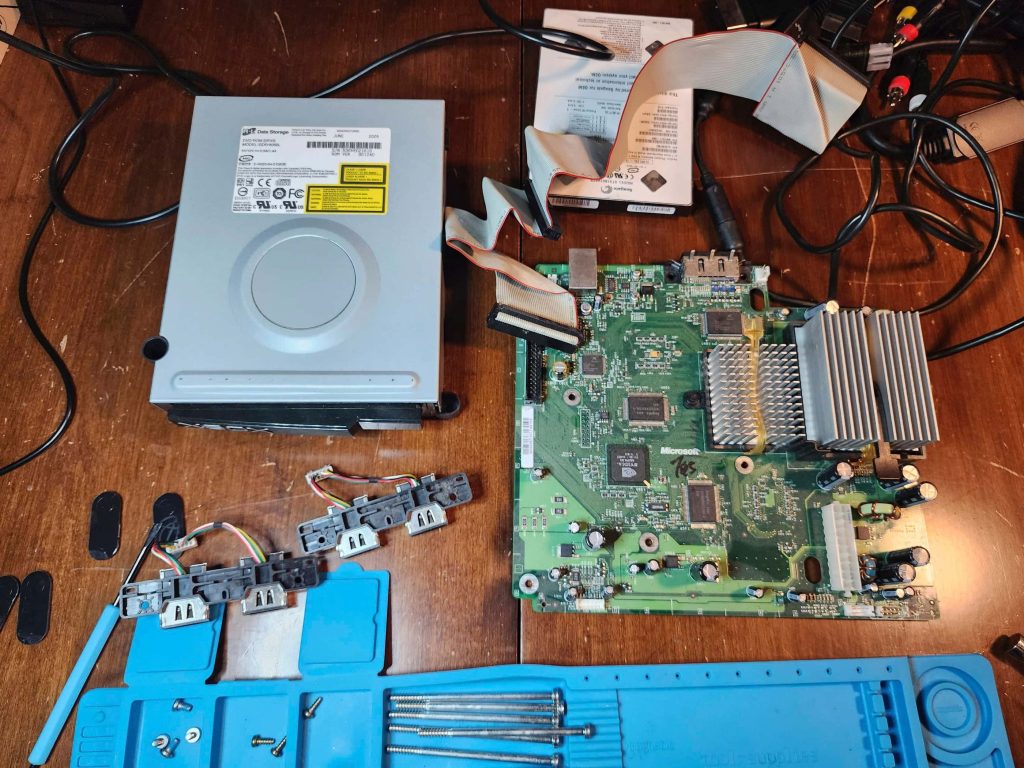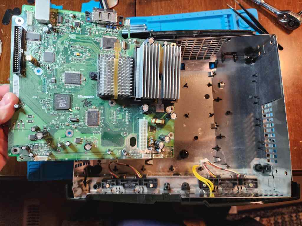 Project Details: Like the PS2, I picked this up on FB Marketplace for an extremely good price. The seller said he was the original owner and that the system worked the last time he played it – which after some questioning, was several years ago. When I got it home, I set it up and powered it on… Bingo! It and the controller worked extremely well. It was however, very dirty and I could tell that it had never been opened before. So, I set about taking it apart; guided by a great video byArctic Lab Services. Though disassembly is involved, it’s a straightforward process. However, I think of all my systems to date, this unit had the most pieces I’ve removed for cleaning. Once inside, I could see numerous dust bunnies along with a noticeable layer of dust on almost every component. It was clear that this had been well-loved and played over the years. After stripping it back to the main board, I proceeded to remove the heatsinks on both the GPU and CPU; finding another layer of dust underneath. I used IPA to remove the old thermal paste from the heatsinks and the processors. I then applied new thermal paste to each and reset the heatsinks.