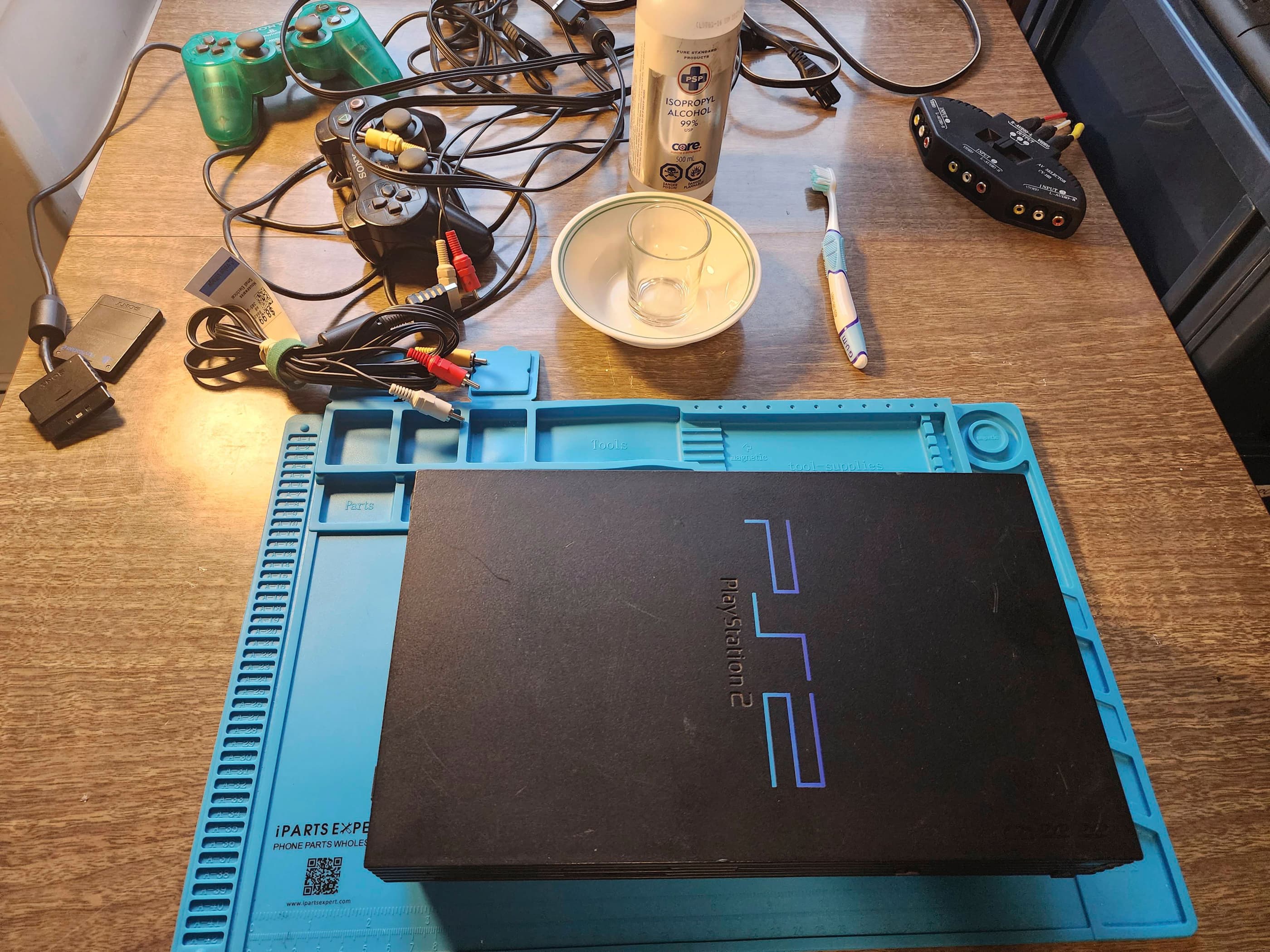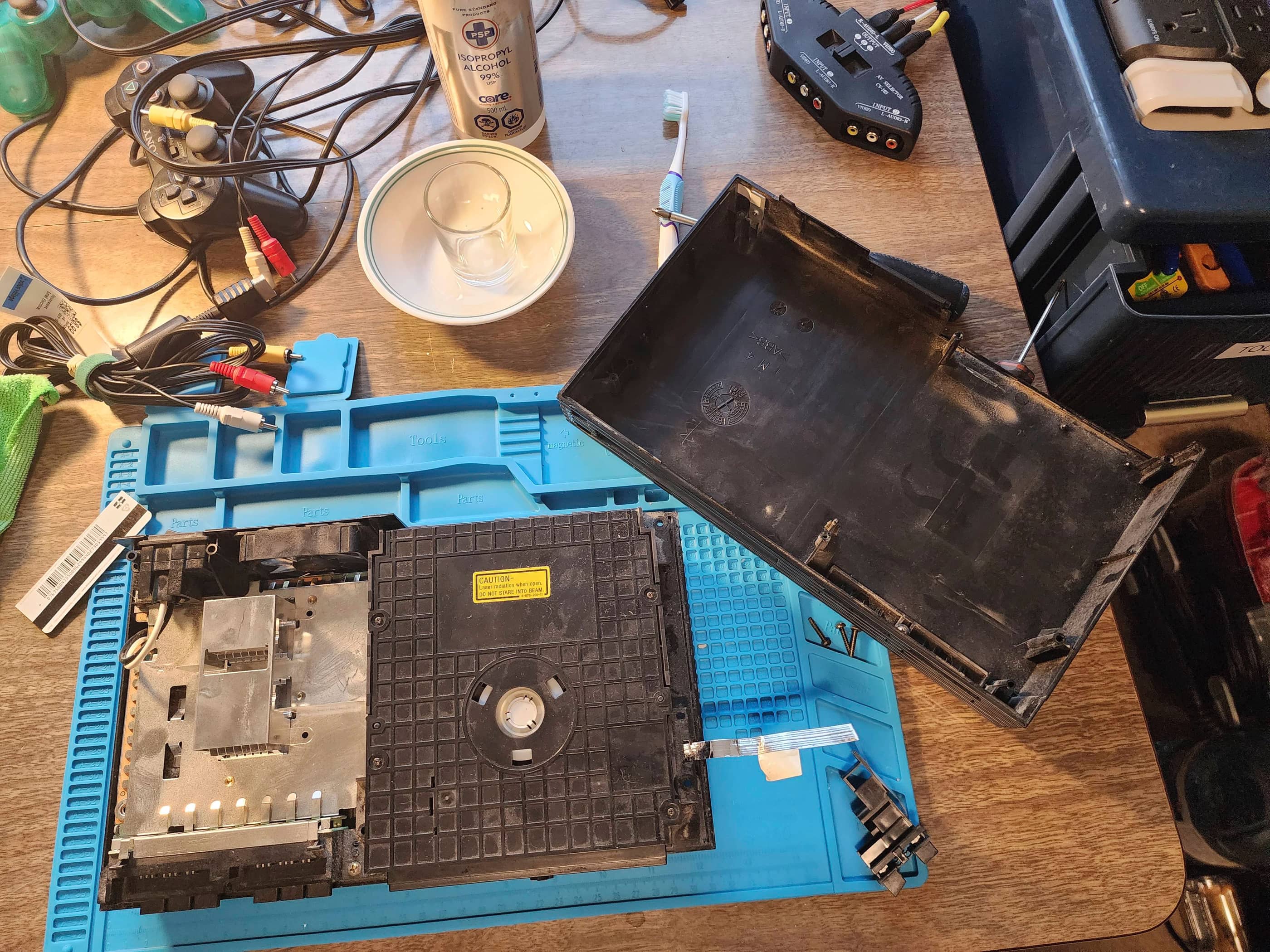 Project Details: This was a FB Marketplace deal that came with 25 games. The system worked but the CD tray had a tendency to retract as soon as it was opened. This made loading or removing a game very difficult. When I opened the console, I could also see that it was quite dirty, so I gave it a detailed inspection and cleaning. Not seeing anything out of the ordinary, I focused on the CD tray. However, somehow in the process of removing and then reinstalling it, the issue had resolved itself. From what I’ve online, it might have been related to how tight the screws were on the drive housing; in particular, the two small ones located near the front and close to the middle of the system. After testing the system and seeing everything worked great, I then disassembled, cleaned, and reassembled the controllers. This system is another favourite of my kids, though as my son said, “I seem to remember the graphics being better”. 😂